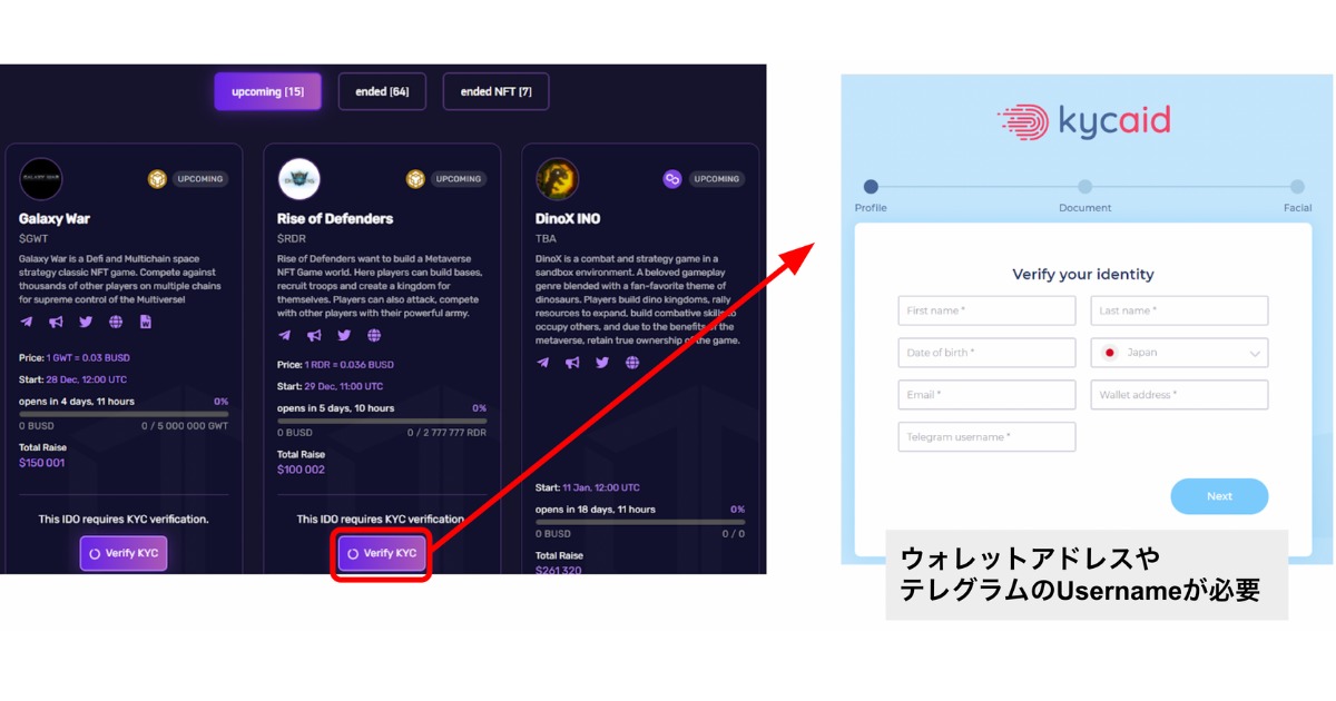 TrustPadでは、トークンセールに参加する前にKYCを完了しておく必要があります。