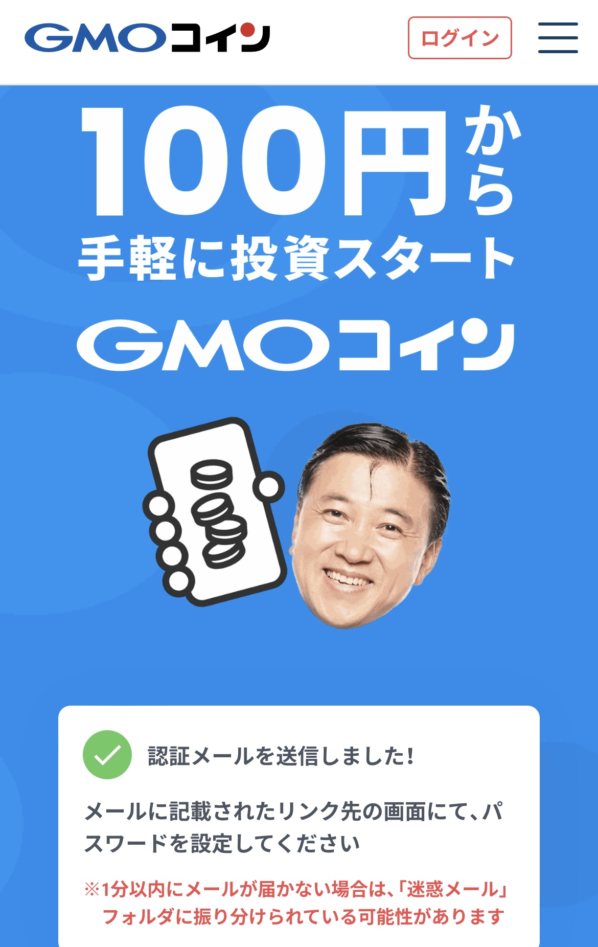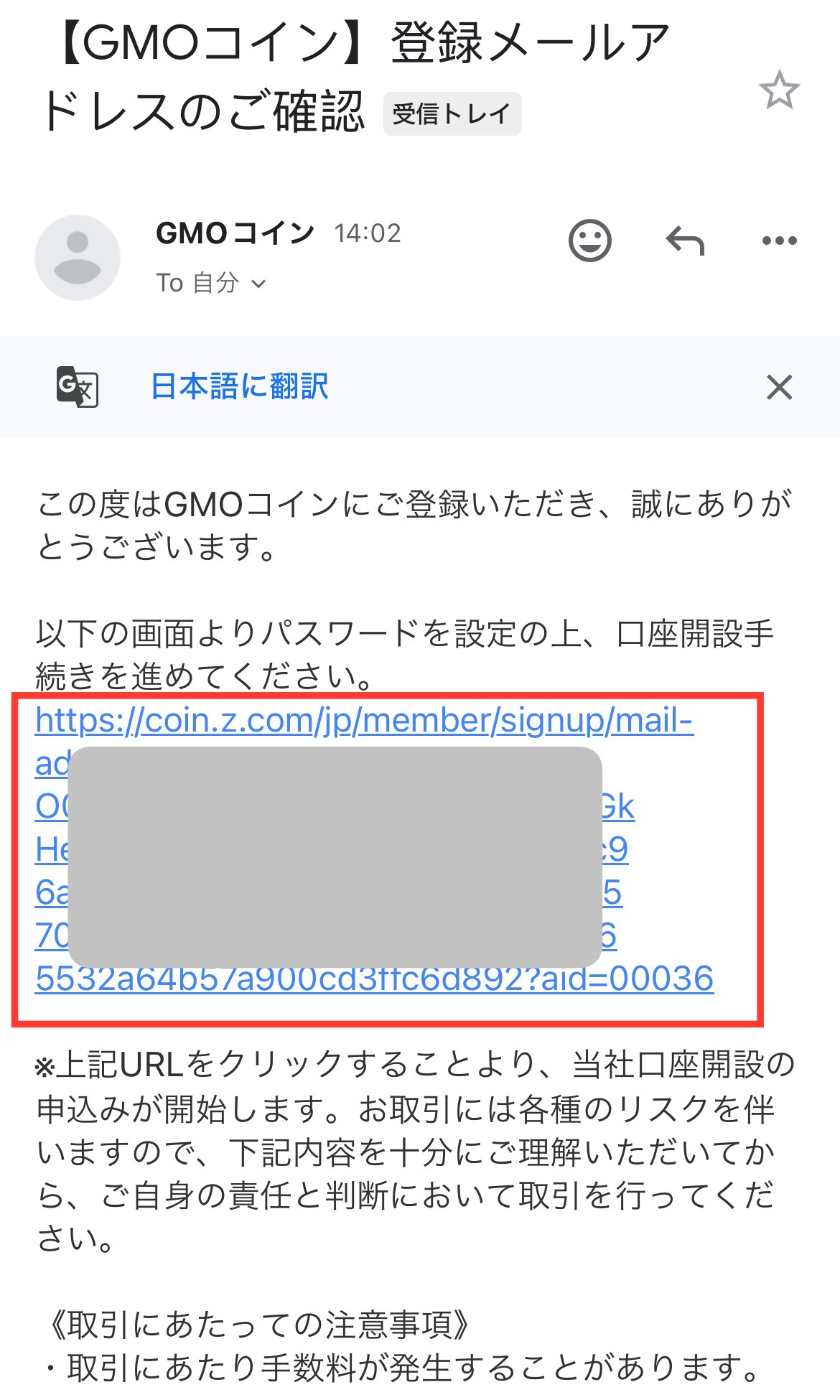 入力したメールアドレス宛に、GMOコインから認証メールが届きます。