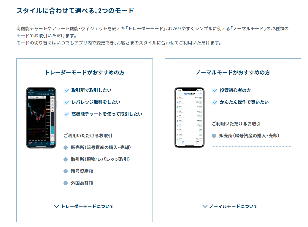 仮想通貨取引が初めての方は、まず「ノーマルモード」を使うことをおすすめします。