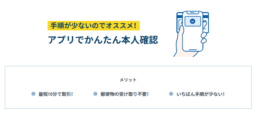 口座開設は、スマートフォンと本人確認書類があれば、「かんたん本人確認」を利用することで最短10分で完了します。