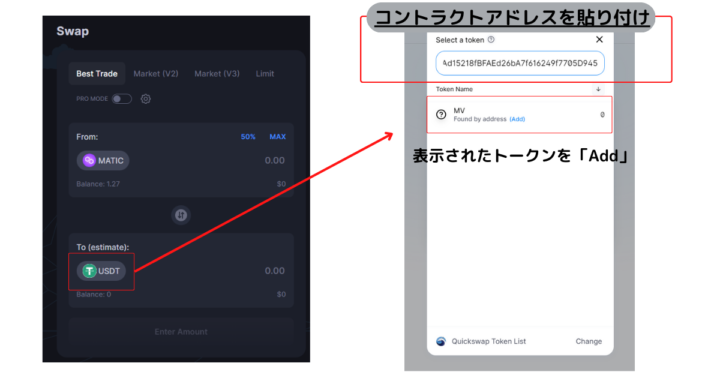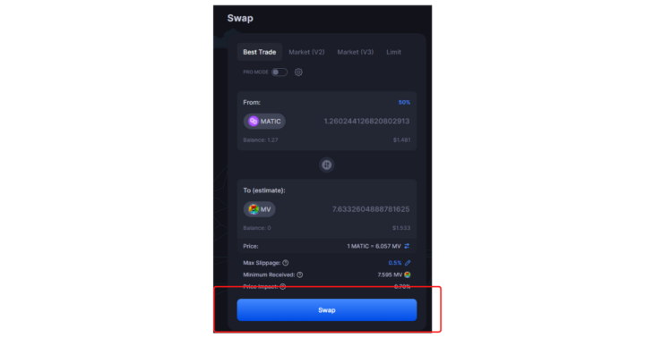 - QuickSwapでMATICをMV・Rondトークンに交換