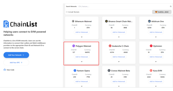 手動で設定できますが、「ChainList」を利用すれば簡単に追加できます。